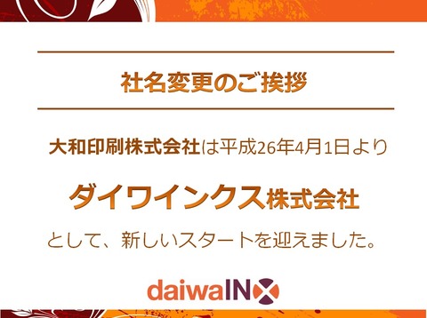 このたび、弊社では、今後の事業ドメインと事業展開を見据え、平成26年4月1日をもちまして社名を「ダイワインクス株式会社」に変更させていただくこととなりました。
